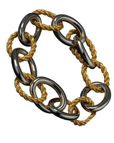 View full detailsMake a bold style statement with this luxury dual-tone bracelet, crafted with oversized gold and silver links intertwined in a rope-inspired design...