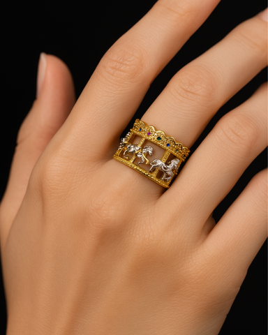 View full detailsStep into whimsy and luxury with the ORANA Carousel Royale Ring, an artistic masterpiece inspired by the charm of vintage carousels. This statement...