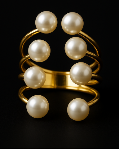 View full detailsStep into luxury with the ORANA Multi-Pearl Statement Ring, a bold masterpiece that redefines modern elegance. Crafted with a radiant gold-tone fin...