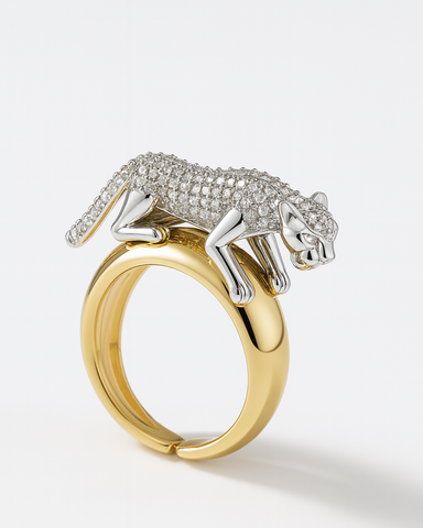 ORANA Luxe Panther Pavé Dual-Tone Statement Ring