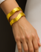 The ORANA Hammered Wave Cuff is a bold interpretation of contemporary luxury. Handcrafted with a distinctive hammer-beaten finish, every curve tells a story of raw artistry and refined elegance.Wavy open-ended silhouette, striking yet versatile. Anti-tarnish premium gold finish for lasting brilliance. Adjustable, designed to embrace every wrist comfortably. An iconic piece that transitions effortlessly from daywear minimalism to night-time statement styling.